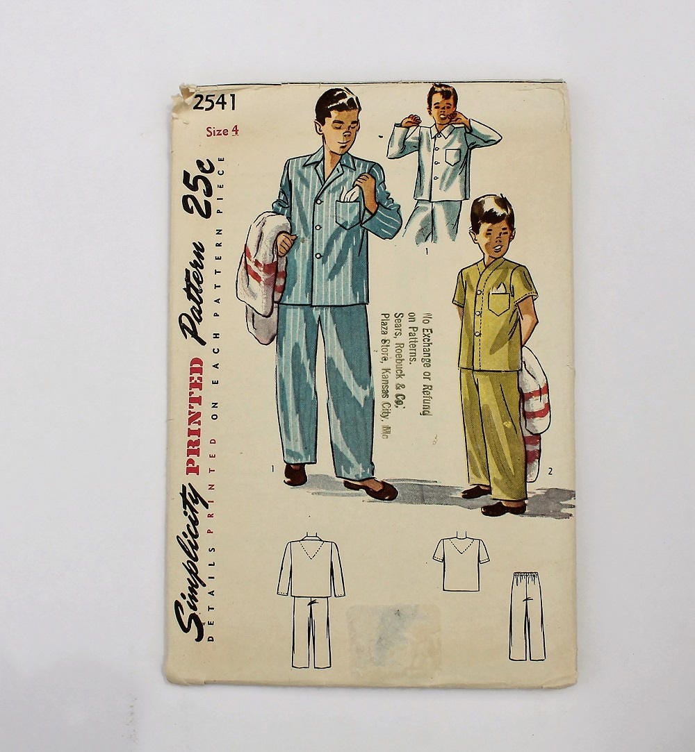 Simplicity 2541 Boys Pajamas 40s Vintage Sewing Pattern Etsy